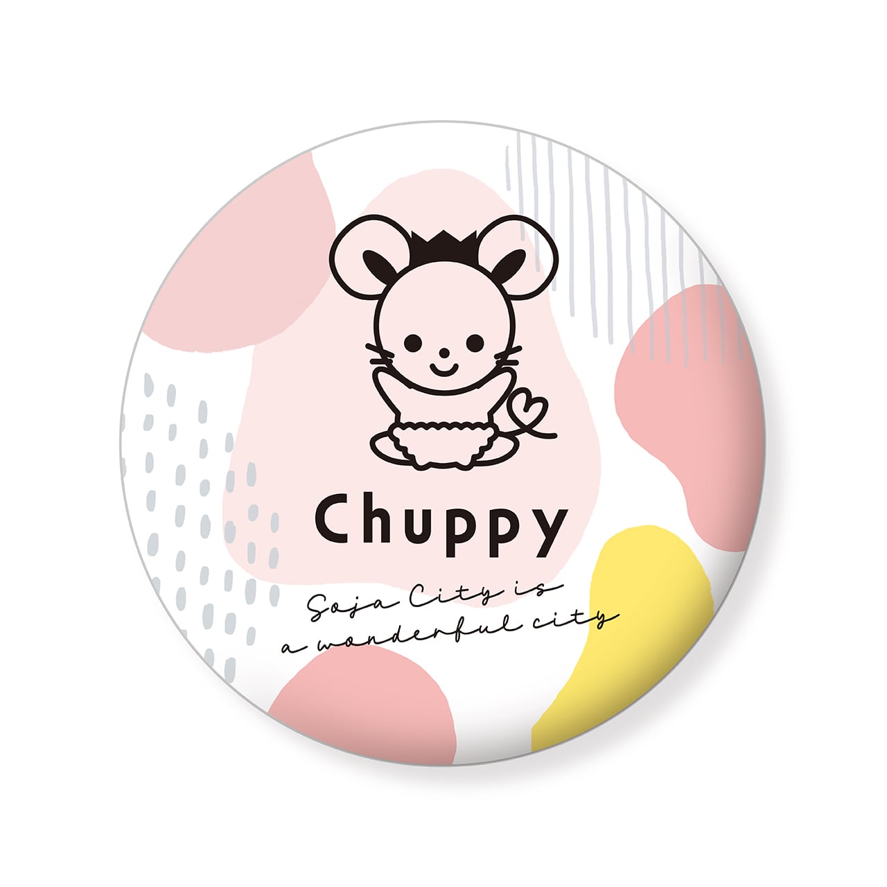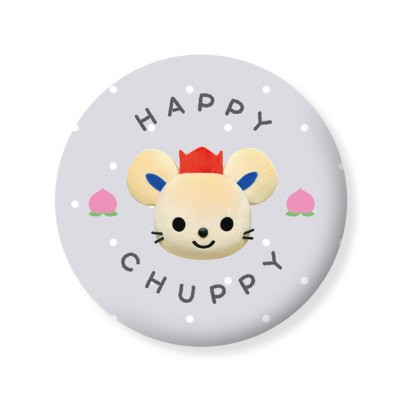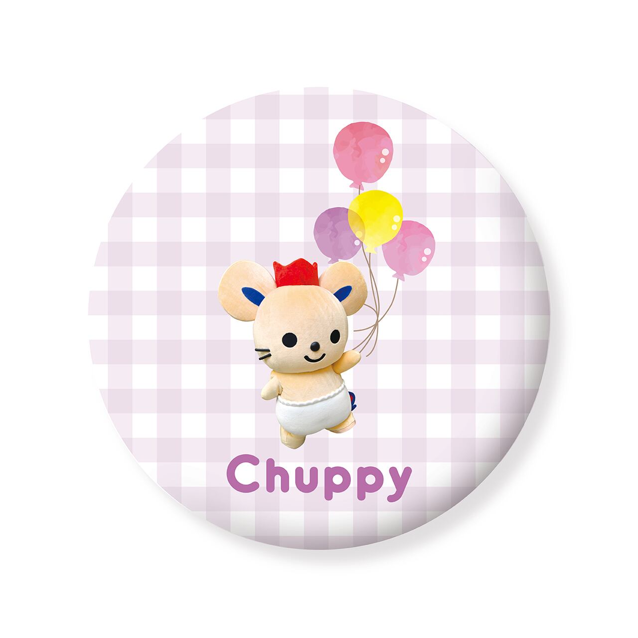 チュッピーがデザインされた、かわいい缶バッジの3個セット。